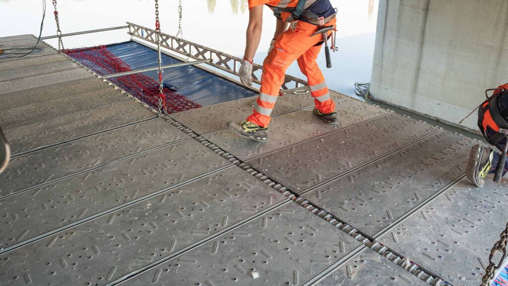 Si tratta infatti di una soluzione innovativa e brevettata che consente di raccogliere e gestire in modo controllato le acque e i residui di lavorazione durante gli interventi di manutenzione su ponti e viadotti.