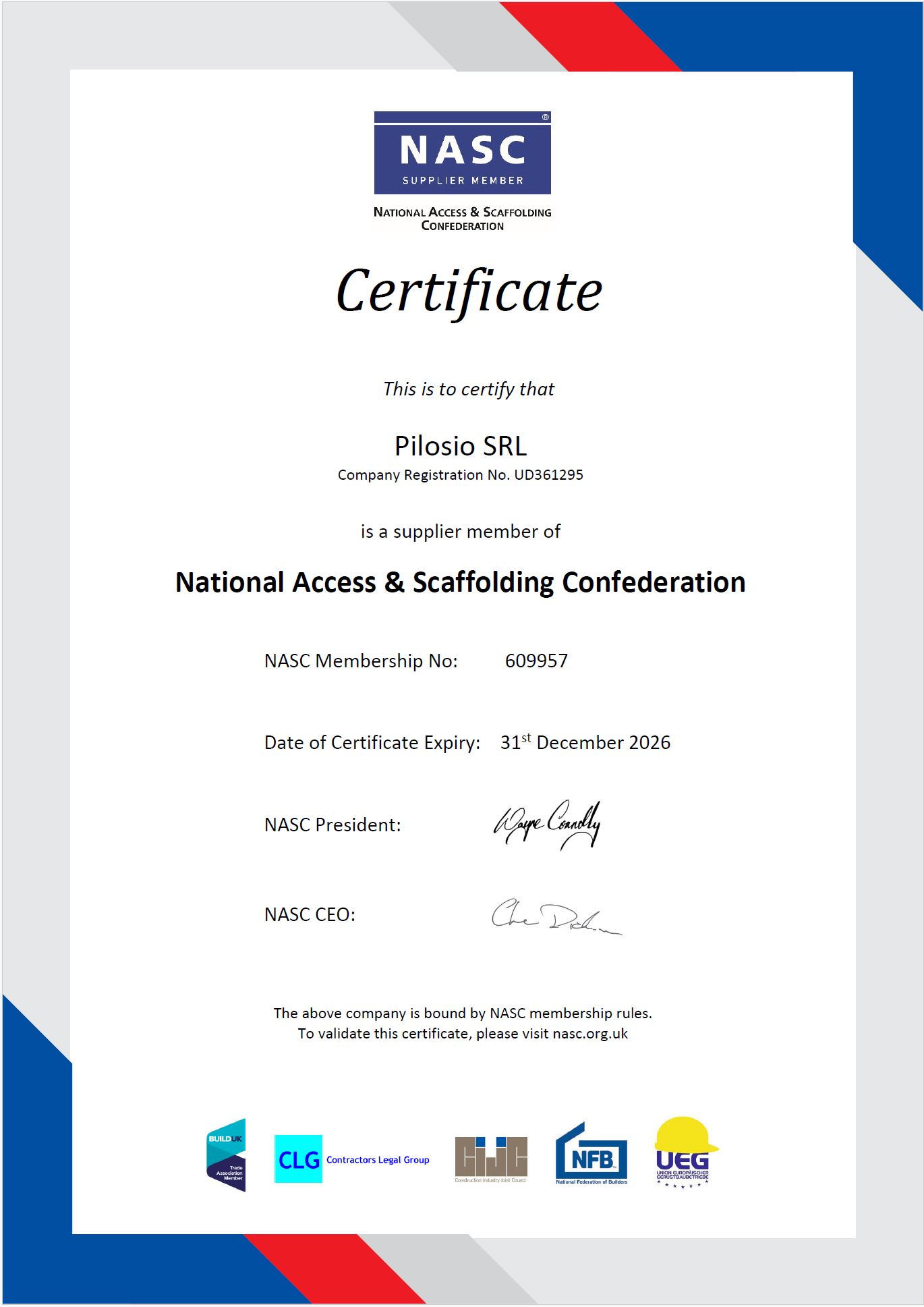 National Access & Scaffolding Confederation (NASC), il principale organismo di riferimento nel Regno Unito per il settore dei ponteggi e dei sistemi di accesso.