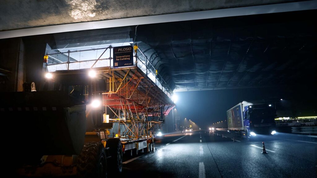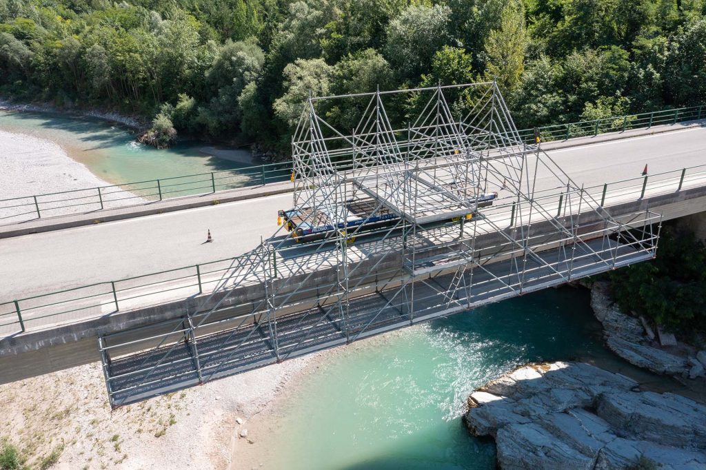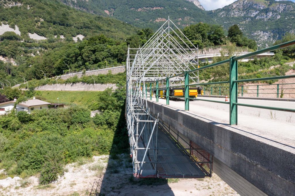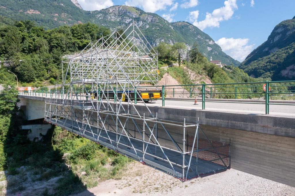 Le aree di lavoro create anche in negativo possono essere realizzate con qualsiasi tipologia di ponteggio multidirezionale e di passo e, soprattutto, con qualunque geometria si renda necessaria per raggiungere i punti estremi su ponti, viadotti e gallerie e in genere qualsiasi opera da servire.