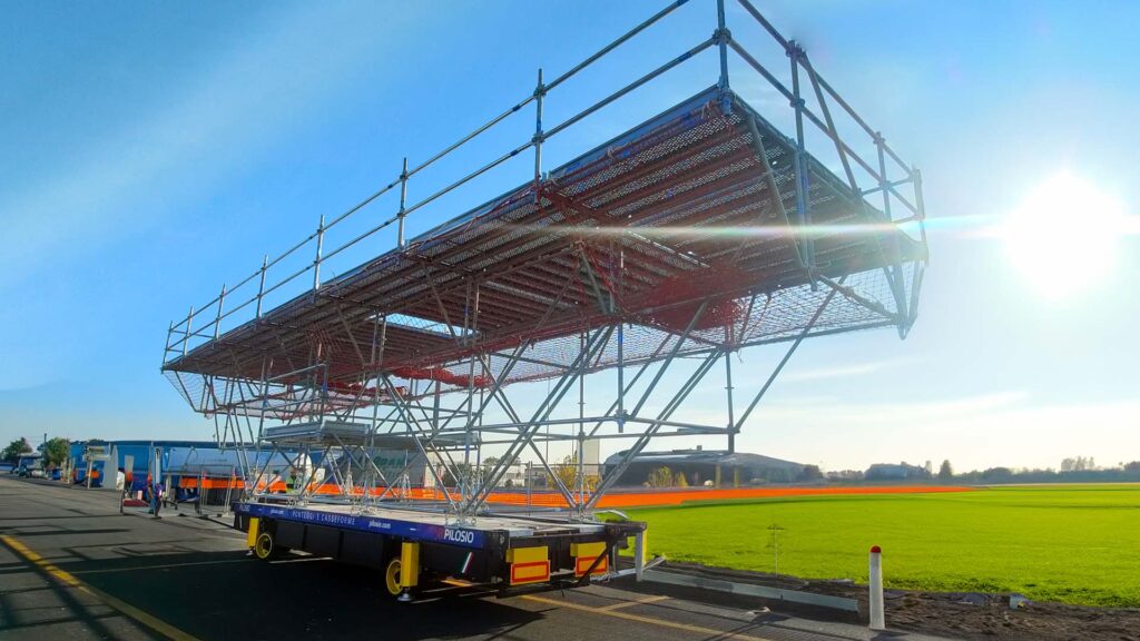 Il carro mobile per ponteggi Dynamo è molto funzionale e flessibile perché consente di creare comode piattaforme di lavoro di grandi dimensioni o strutture che seguano l’andamento geometrico del manufatto da servire e di spostarle man mano che i lavori avanzano, senza smontare e rimontare le strutture di ponteggio.